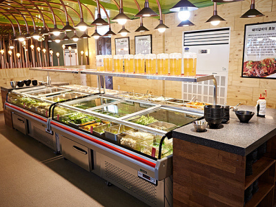 정말 당황스러울 정도로 신선한 야채와 반찬이 있던 셀프 코너입니다. 고기 시키면 샤브샤브가 서비스인데…이정도면 샤브샤브 전문점이잖아요.